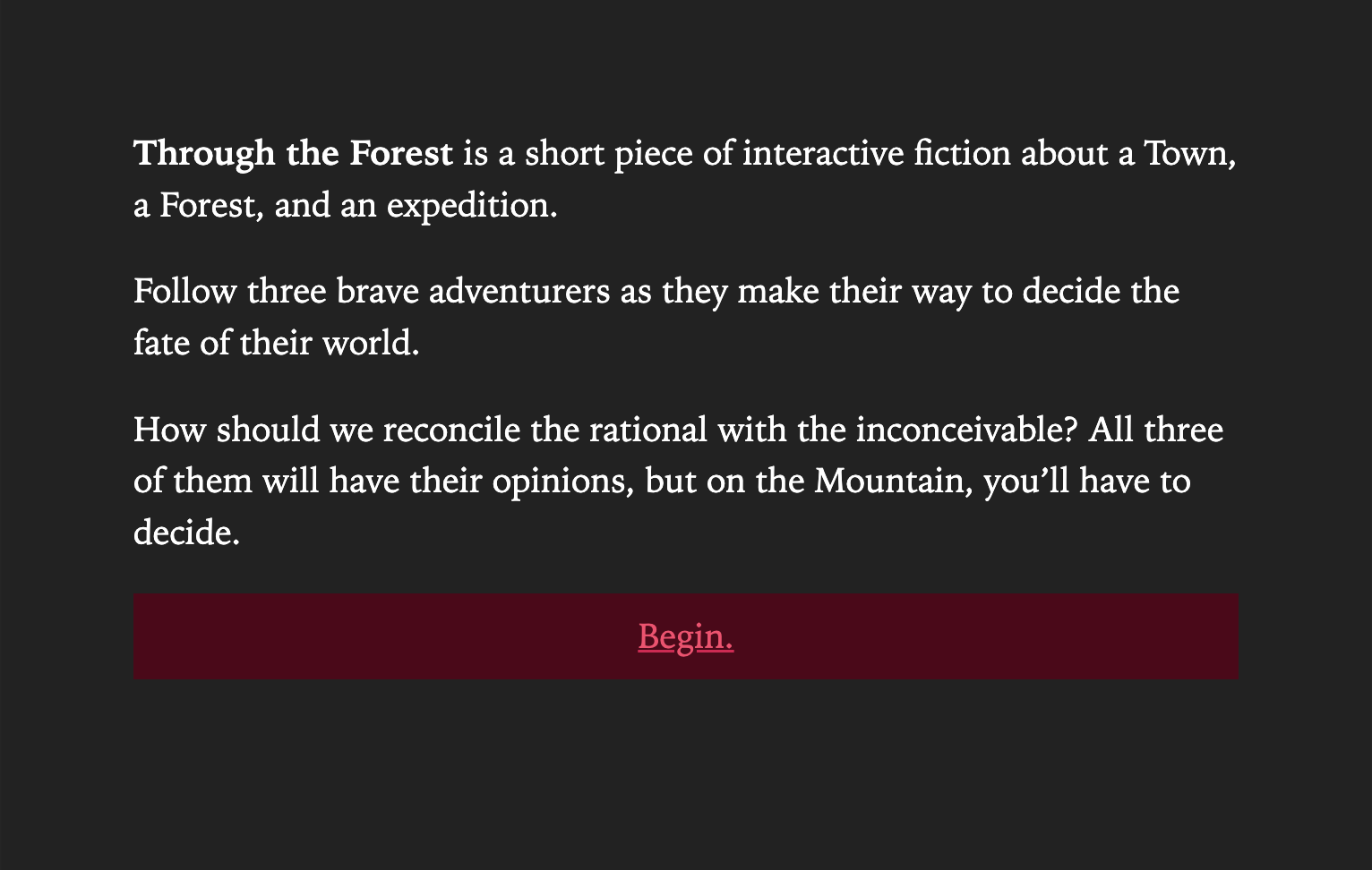 an interactive existentialist short story written by myself and my classmate kate as a final project